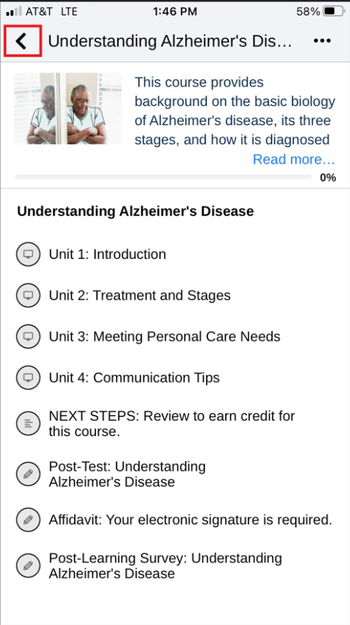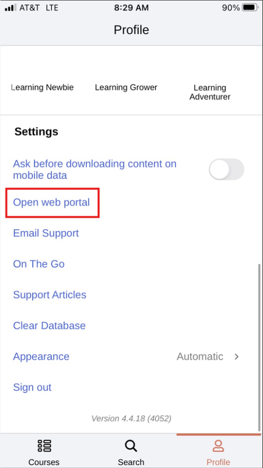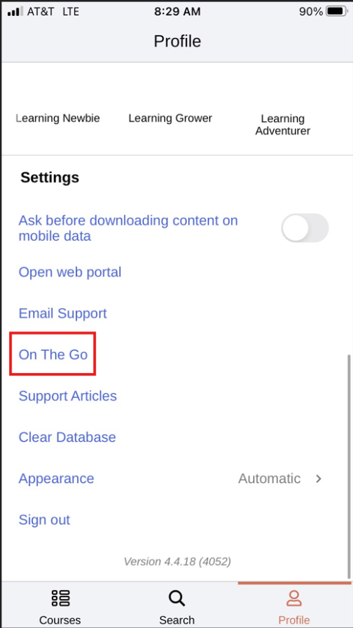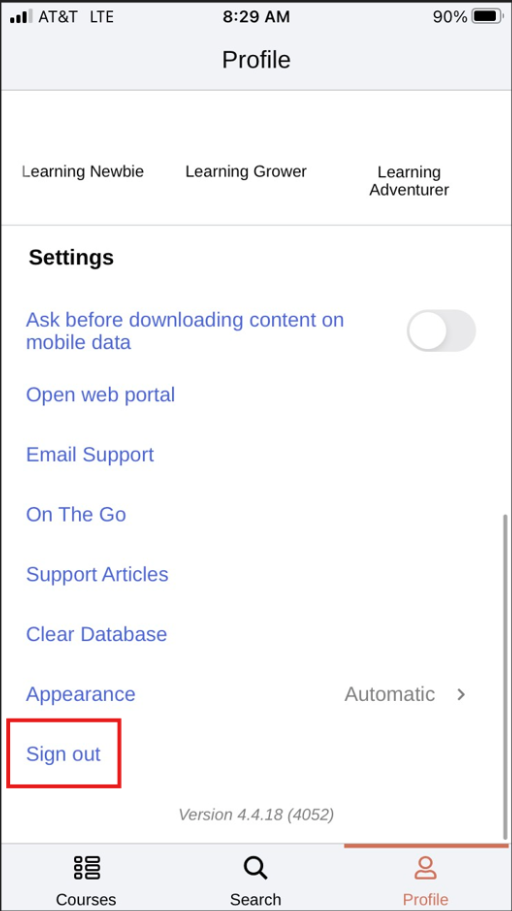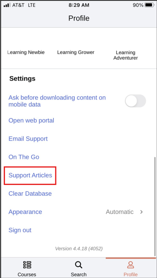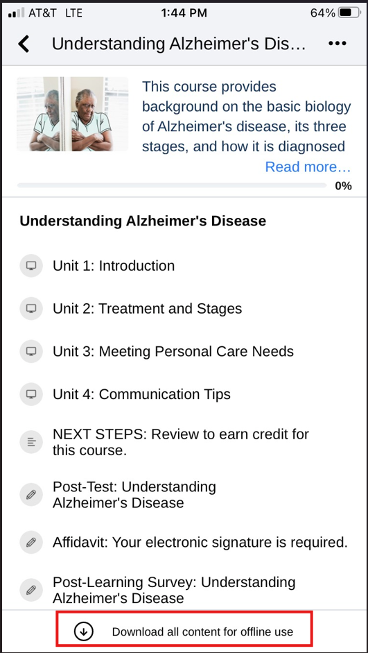 You will now see all the sections that are inside the course. If there is a "Download all content for offline use" button at the bottom, it means the course has not yet been downloaded. We suggest always downloading the course before starting! This is also what you will want to do if you are planning on doing your courses offline. You can download your course by tapping the download button. It may ask to confirm before downloading.