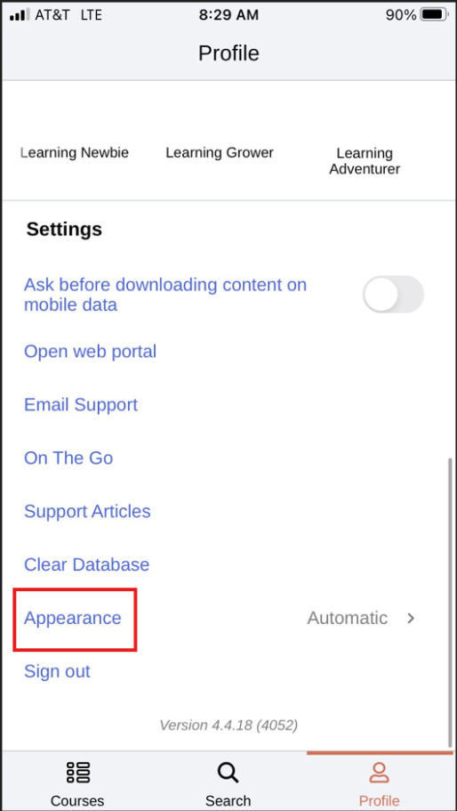 "Appearance" will allow you to adjust the appearance of the app on your device.