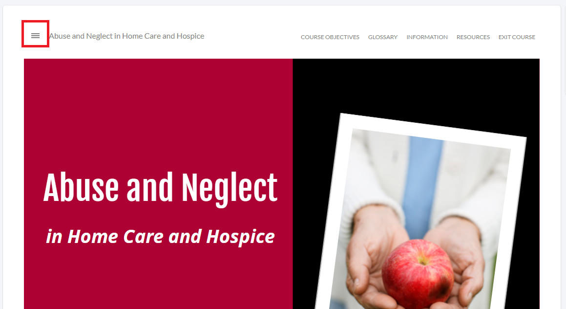 - While the course is open, click on the 3 lines in the upper left corner of the course.